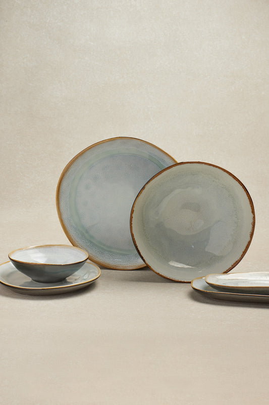 Mantel Bordado · Puro Lino Lavado · Diseño Lavándula · base Marfil/Gris