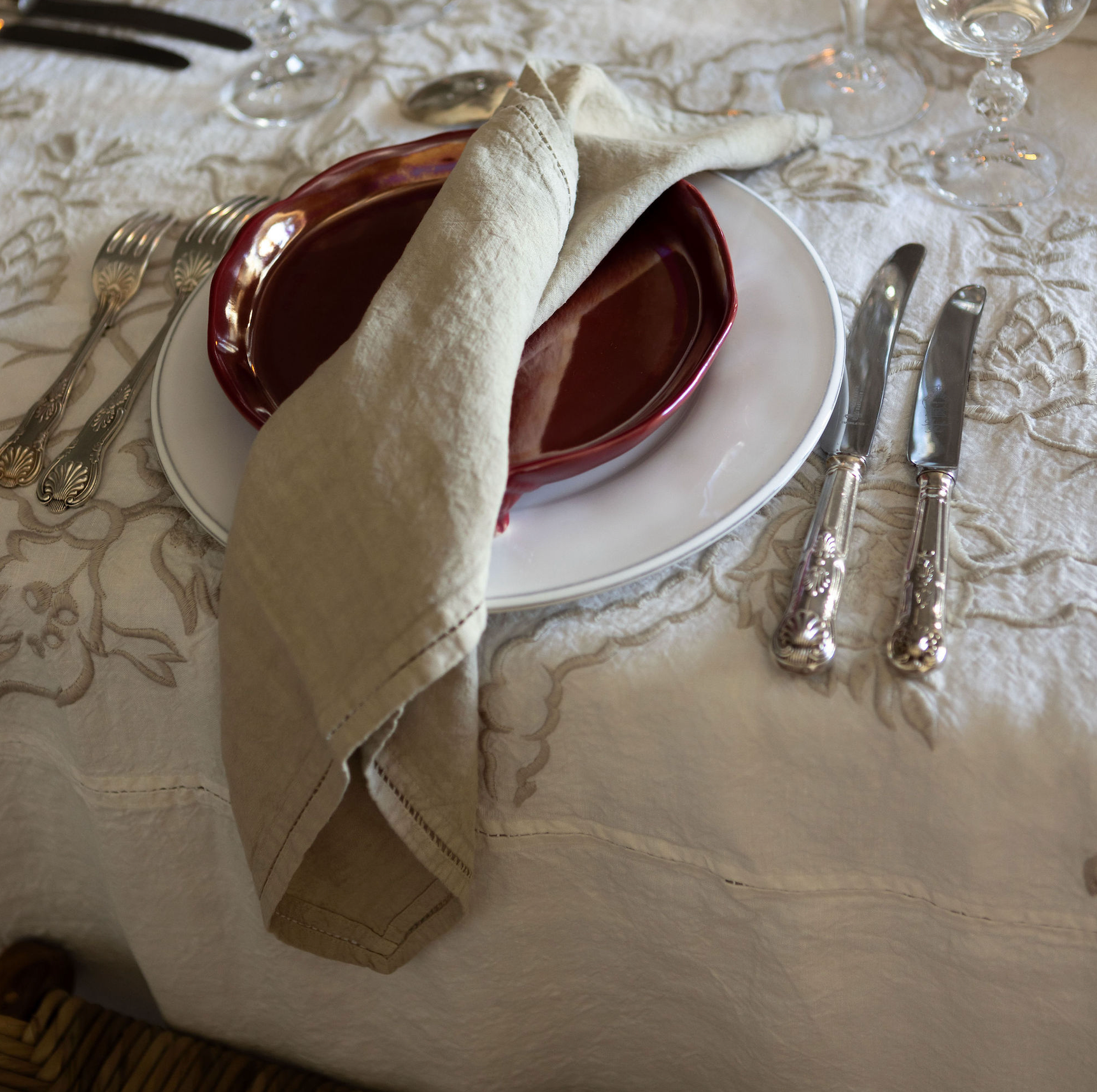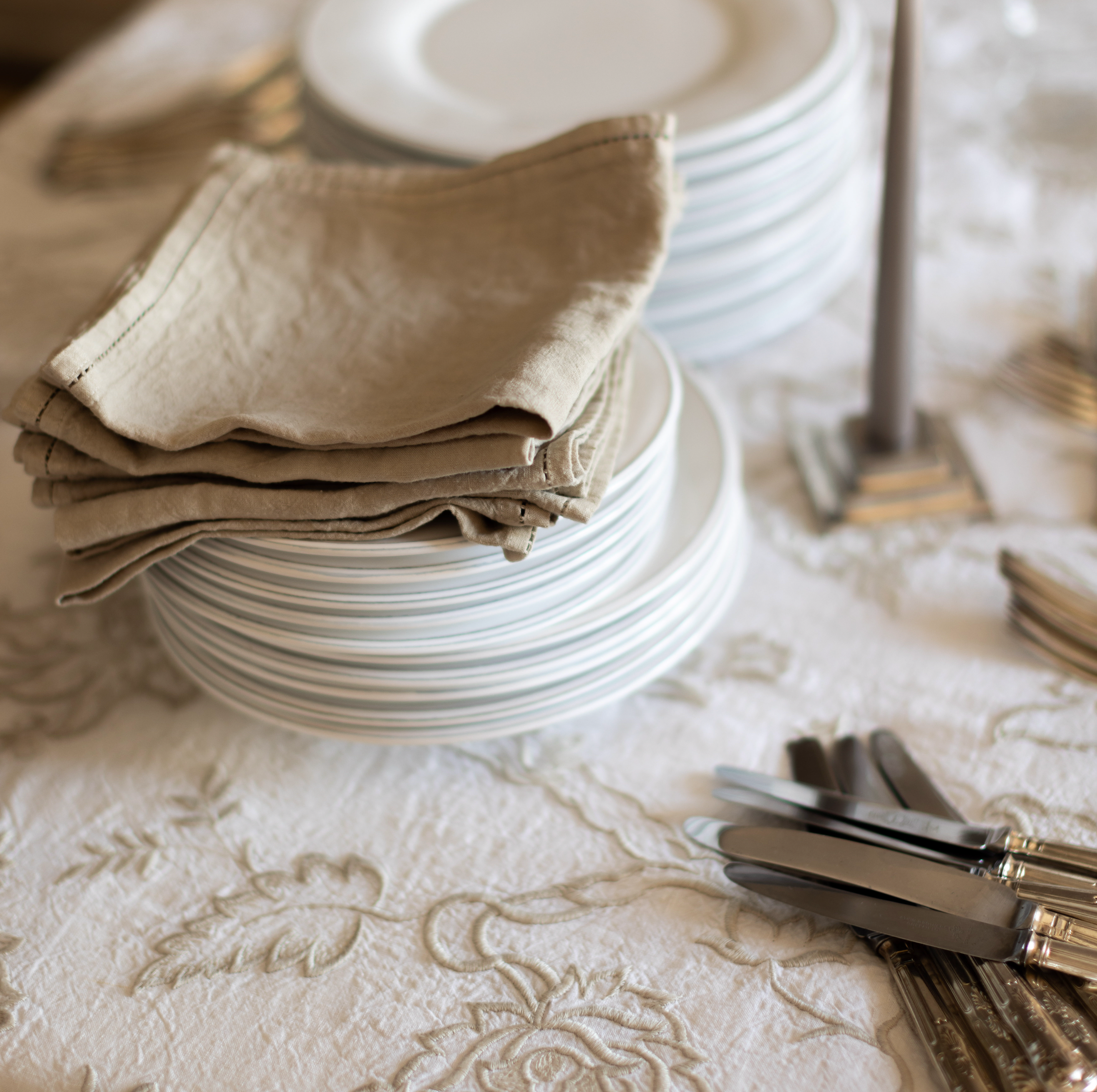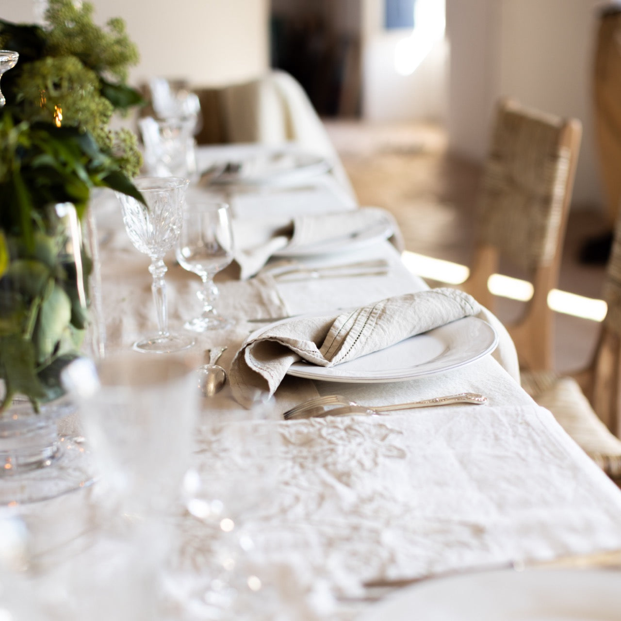 Our embroidered napkins are the perfect complement that adds elegance to our tablecloths and to the table.