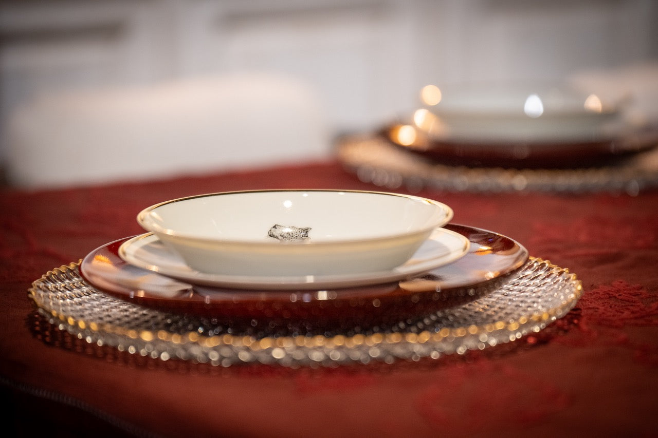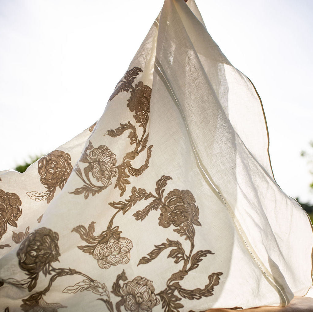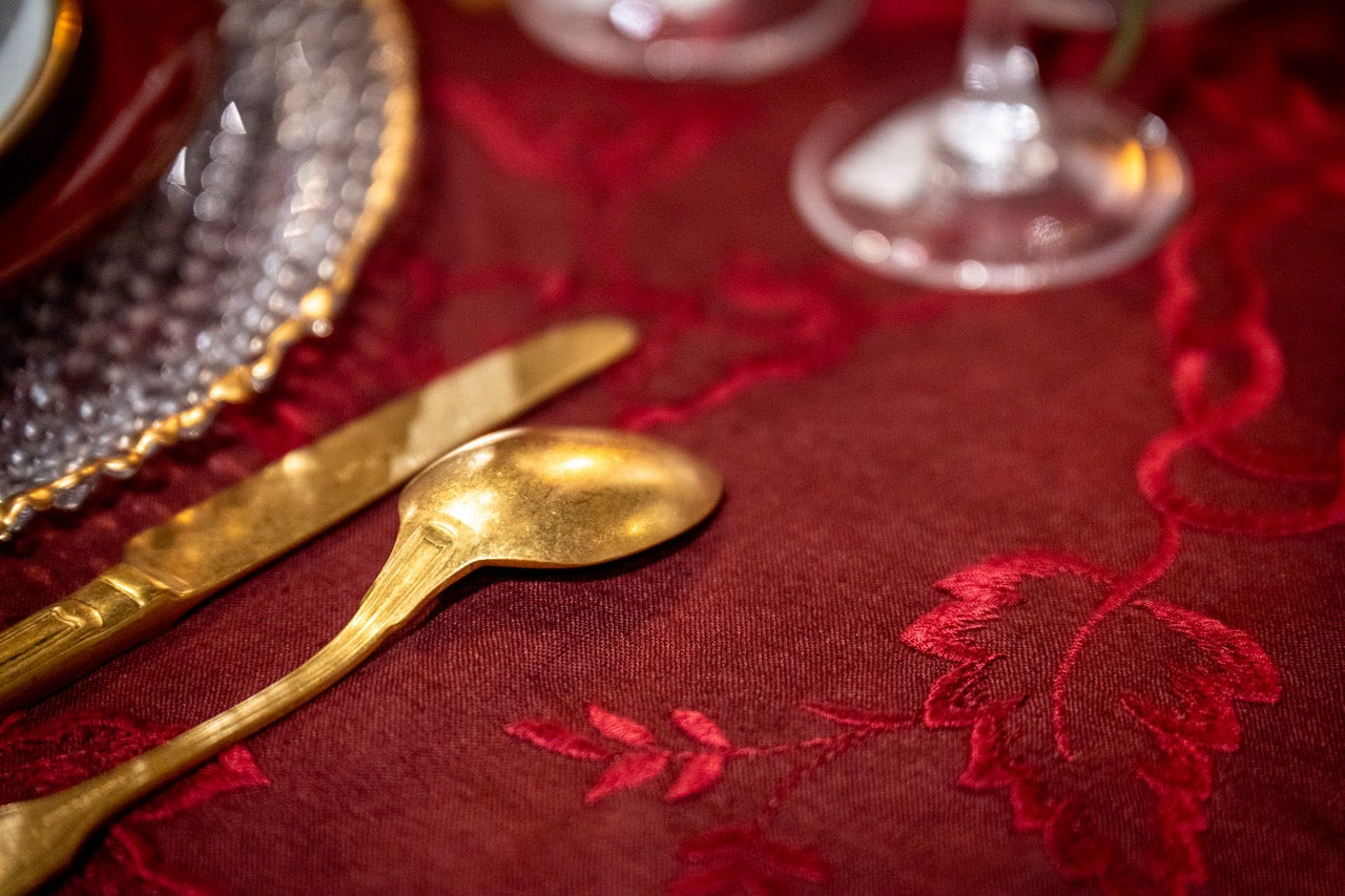 270,000 needle stitches make up our tablecloth patterns, so each tablecloth takes an average of twenty-four hours to come to life.