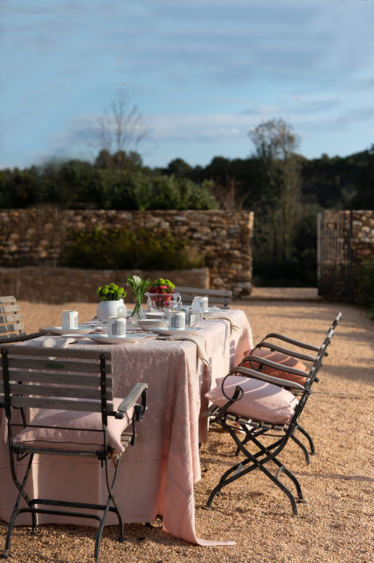 Embroidered Tablecloth - Pure washed linen - Lavandula Design - Beige/Pink base