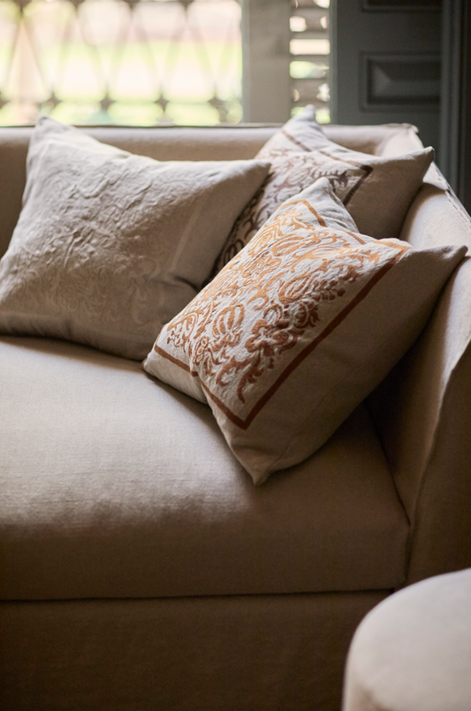 Funda De Cojín · Puro Lino Lavado · Estampación manual · Hayat