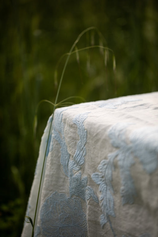 Mantel Bordado · Puro Lino lavado · Diseño Dominique · Azul