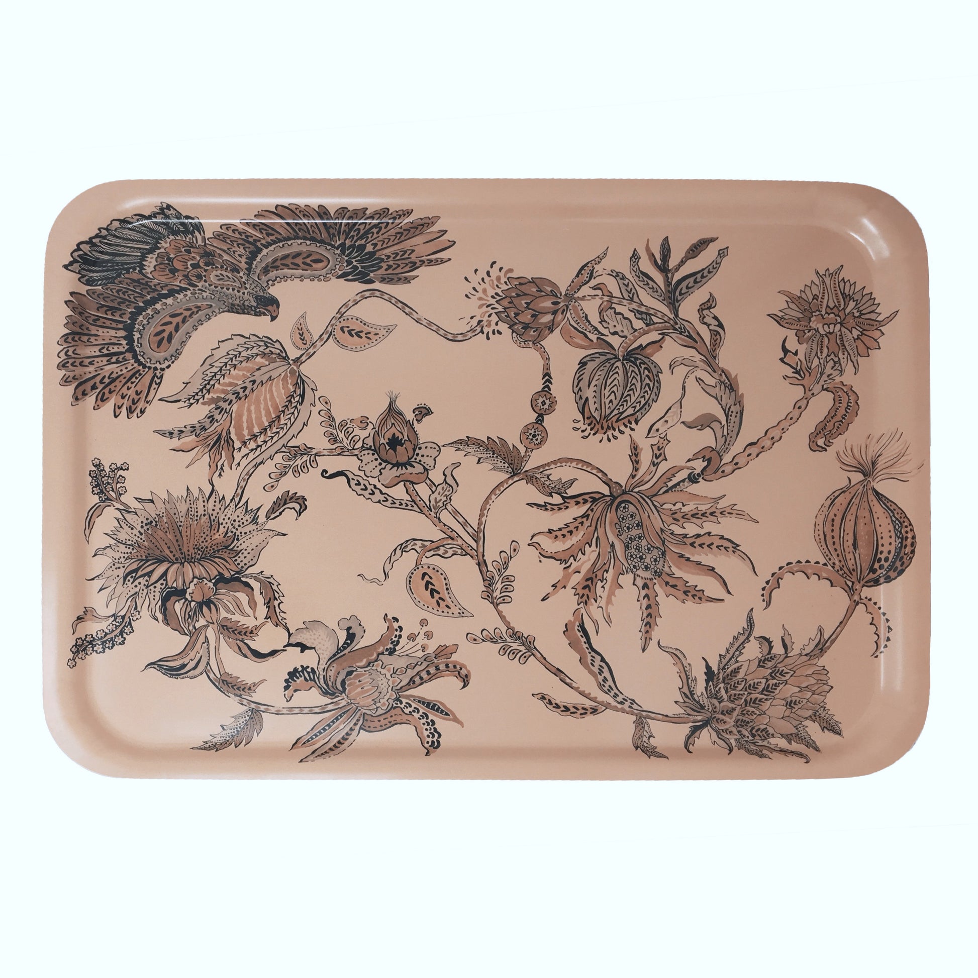 Plateau en bois fabriqué en Suède avec le motif Harris en couleur sable.