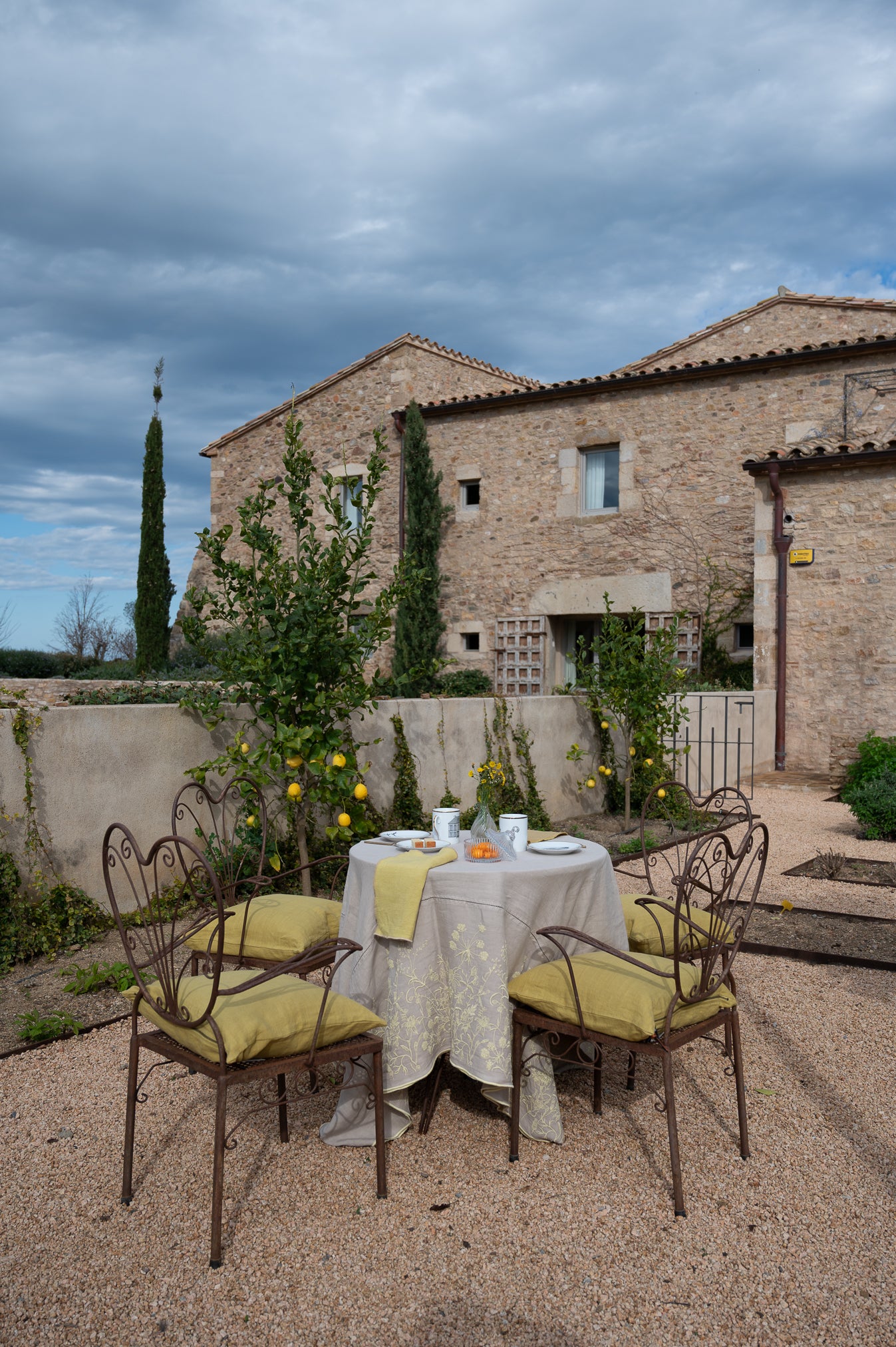 Mantel Bordado · Puro Lino lavado · Diseño Lavándula · base Beige/Amarillo