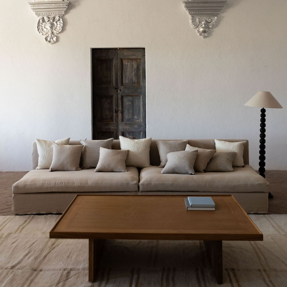 Le canapé est déhoussable. Sa housse est en 100% lin beige, elle a un grammage de 450 gr/m²ce qui lui assure une grande résistance et qualité.