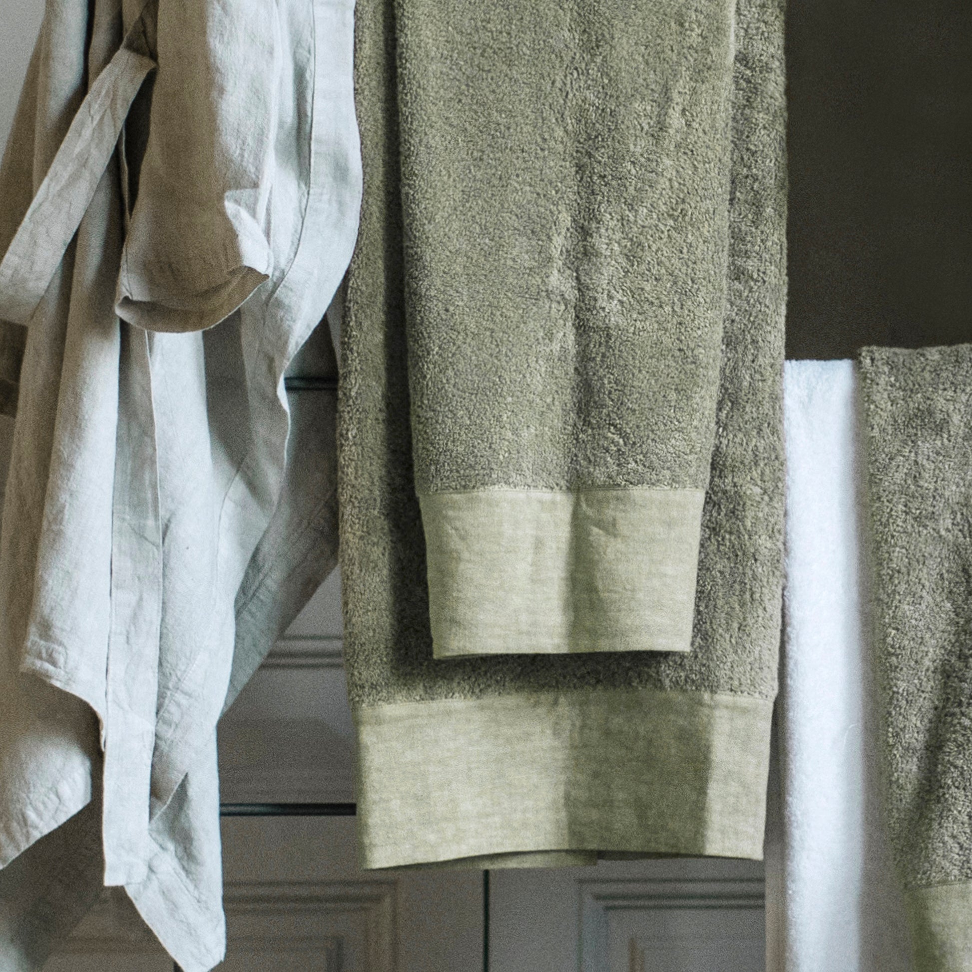 Serviette 100% coton, 600gr, avec double bordure 100% lin, avec un traitement de lavage et de teinture pour la douceur et le confort.