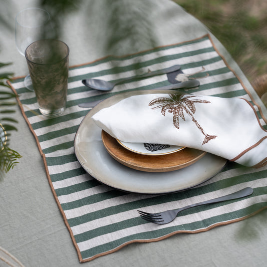 Servilleta De Rayas · Puro Lino Lavado · Beige/Verde