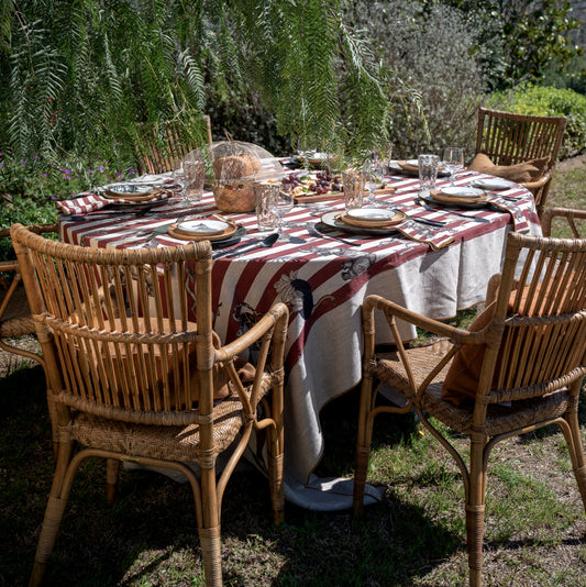 Mantel Estampado · Puro Lino Lavado · Rayas · Natural/Burdeos