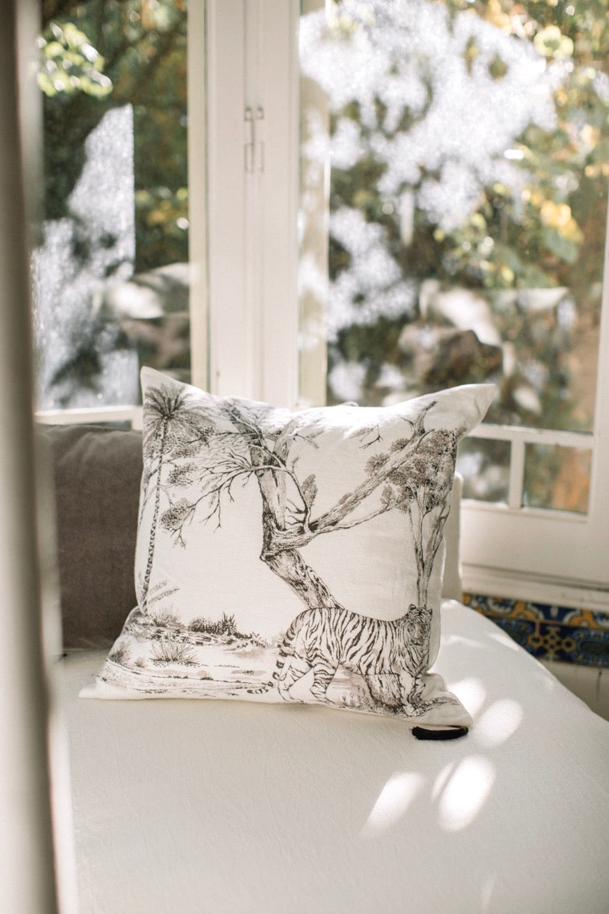 Funda De Cojín · Puro Lino Lavado · Toile de Jouy · Tigre
