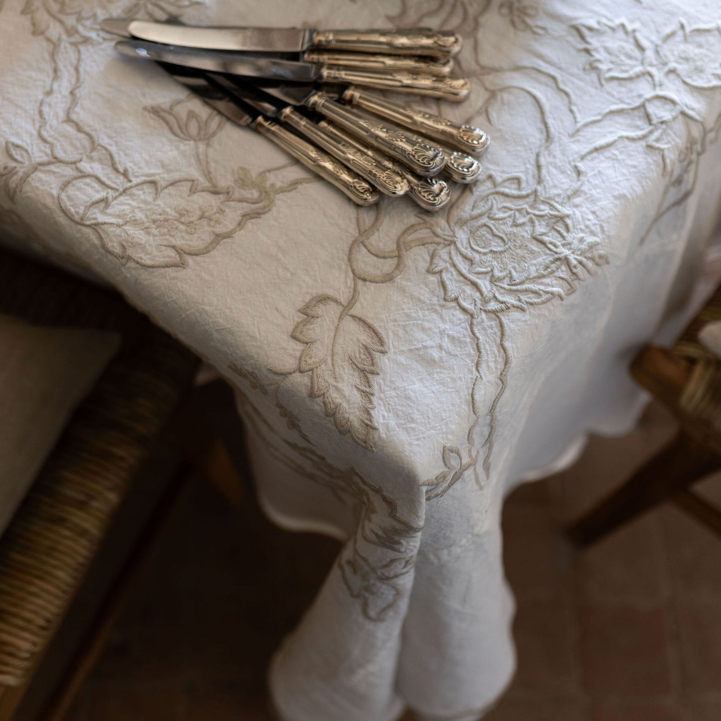 Mantel Bordado · Puro Lino lavado · Diseño Paisley · Beige