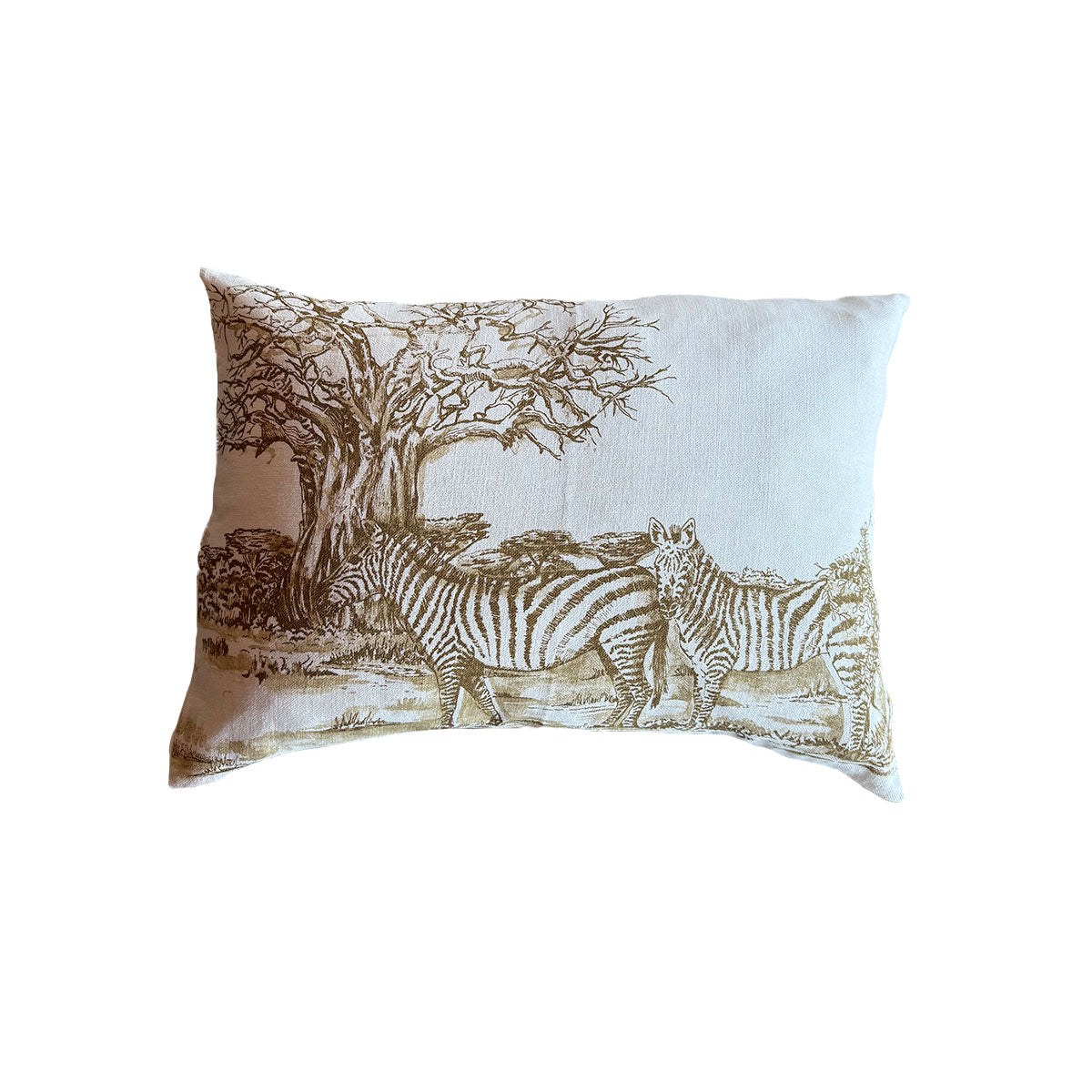 Funda De Cojín · Puro Lino Lavado · Diseño Toile de Jouy Cebra · Blanco/Verde