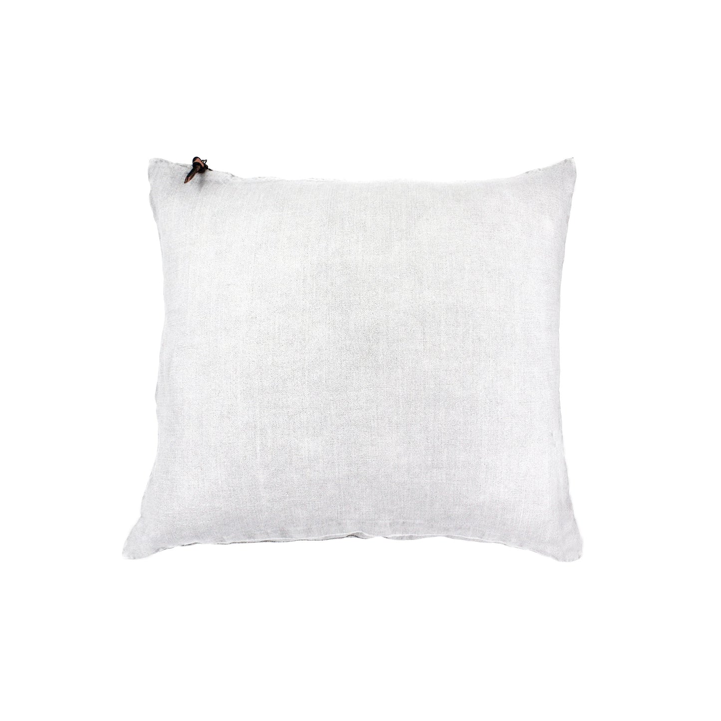 Funda de cojín de lino lavado, con cierre de cremallera metálica en oro viejo y tirador de triple nudo de cuero.