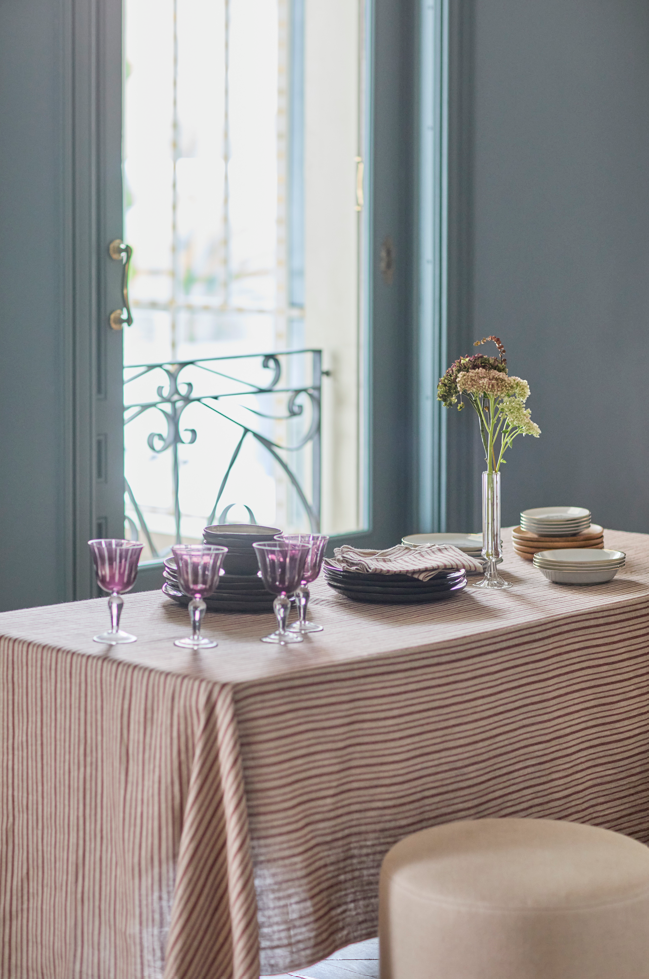 Mantel Estampado · Puro Lino Lavado · Rayas · Natural/Burdeos