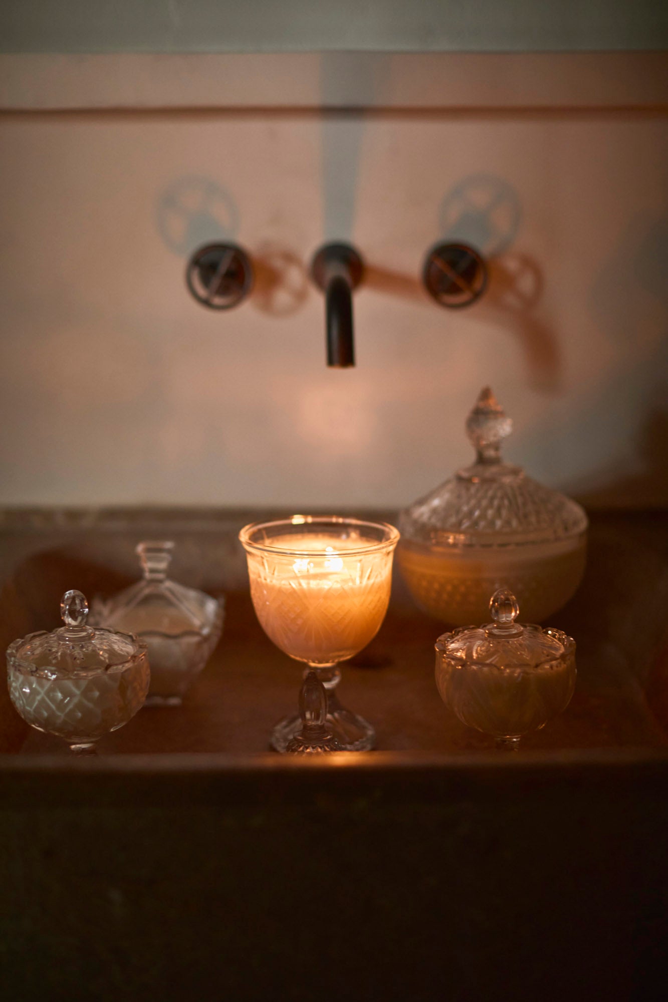 Vela artesanal aromática, hecha a mano en España con cera natural de soja y coco, 100% libre de parafinas. Sus mechas de algodón puro garantizan una combustión limpia y segura, sin tóxicos ni parabenos, con una duración aproximada de 80 horas. Su delicada fragancia llena el ambiente de calidez y confort, mientras que el elegante recipiente de cristal labrado convierte cada vela en un objeto de belleza y sofisticación.